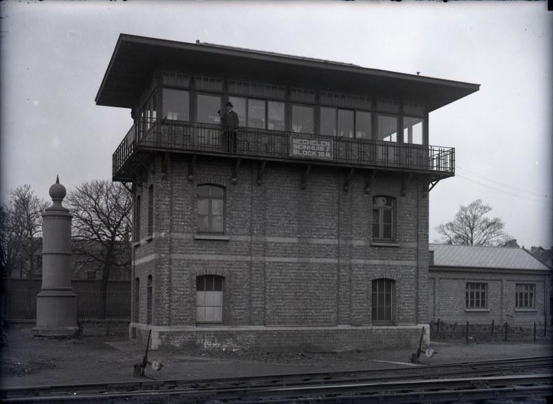BeschrijvingFoto van seinhuis Blok 10A te Mechelen, op de lijn naar Brussel. Dit seinhuis werd gebouwd in 1925 en gesloopt in 1959. Naast het seinhuis is het monument De Mijlpaal te zien.