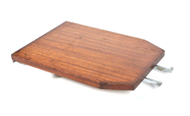 BeschrijvingDit houten tafeltje had één metalen inklapbare poot. Zo kon het tafeltje neergeklapt worden wanneer men meer beenruimte nodig had.