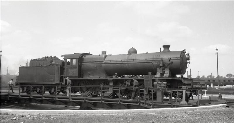 Op deze foto zien we de rechterzijde van locomotief 33.001, behorende tot het type 33 (1D Consolidation). Deze locomotief had Brussel-Zuid (FBM) als stelplaats. De locomotief staat op een draaischijf, dit is een installatie waarmee binnen een zeer beperkte ruimte spoorwegmaterieel van spoor kan wisselen of kan worden gekeerd. Een draaischijf bestaat uit een ronde kuil, met daarin een draaibare brug die men kan aansluiten op meerdere sporen.