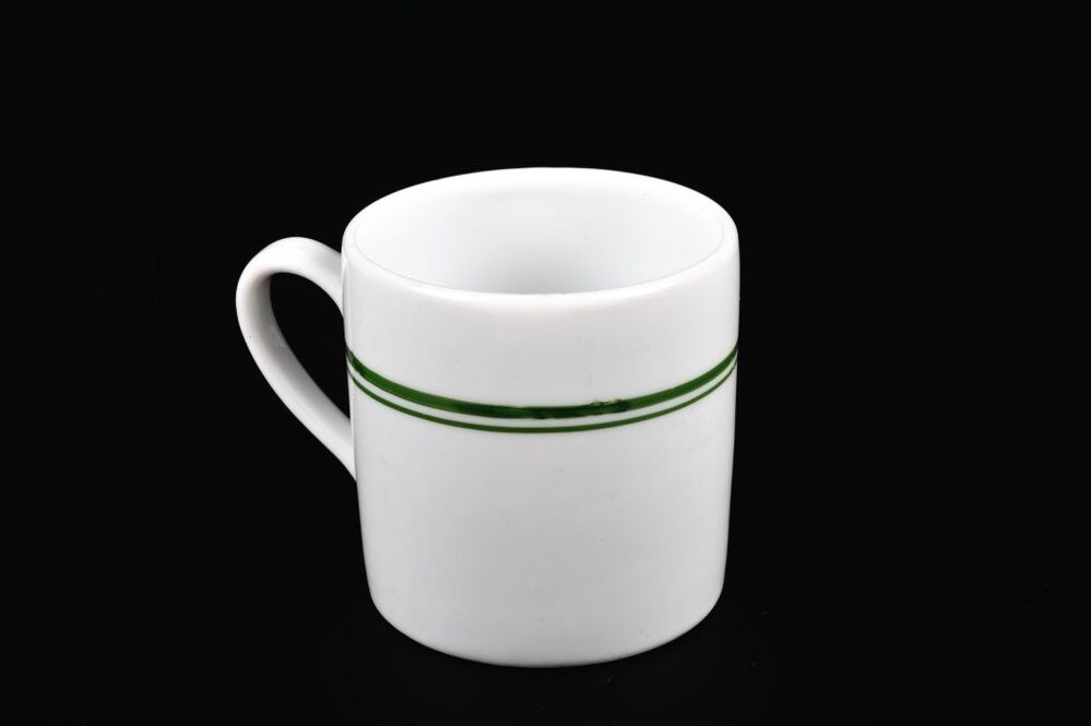 BeschrijvingWit recht kopje met een dubbele groene bies.
