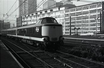BeschrijvingWe zien hier het stuurstandrijtuig, gebouwd door de Nederlandse Spoorwegen (NS).