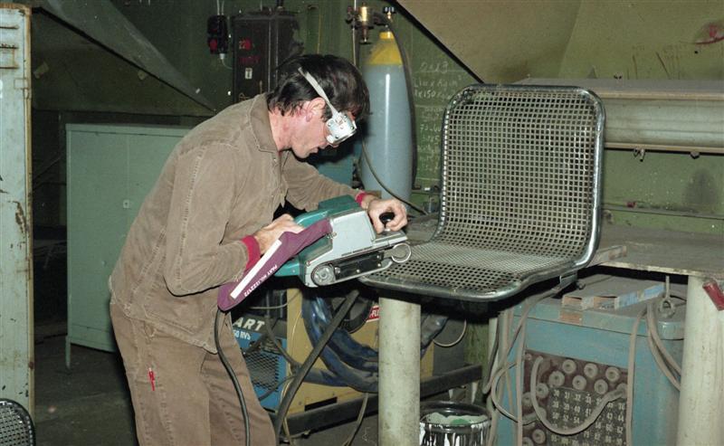 BeschrijvingDe groep bevat 25 negatieven. Deze banken worden in de werkplaats van Salzinnes gemaakt voor de wachtzalen en perrons. Op de foto's zien we onder andere een lasser aan het werk.