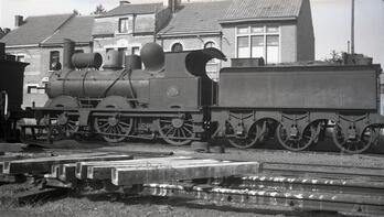 DescriptionOn voit la locomotive à vapeur n° 11 du “Chemin de fer international de Malines à Terneuzen”, garée sur le faisceau de l’atelier de Saint-Nicolas.
