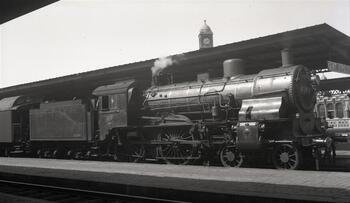 DescriptionOn voit la locomotive 6625 du type 66 (2B – American) dans la gare de Gand-Saint-Pierre. Cette locomotive est accouplée au tender n° 22.256. A l’arrière-plan, on voit la tour de la gare.