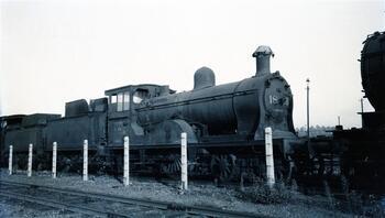 DescriptionOn voit la locomotive à vapeur 1806 du type 18 (2B – American) avec le tender 20.122. La locomotive a été mise hors service, la cheminée a été recouverte et sur le poste de conduite il y a l’inscription ‘ R 1806 Sint Niklaas’. A l'avant, sur la chaudière se trouve encore mentionné l'ancien dépôt Sint-Niklaas ».