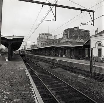DescriptionCe groupe de photos est constitué de deux négatifs. Les photos montrent l’arrière de la gare dans le style néo-Renaissance française. Les quais sont munis de marquises. L’autorail 4307 (série 43) entre en gare sur la voie 2.