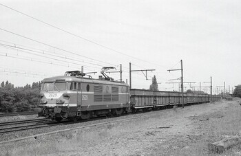 DescriptionCette locomotive appartient à la série 26 et tracte un train de marchandises homogène composé de wagons-trémies. Le train se trouve sur la ligne 27 et roule en direction de Vilvorde.