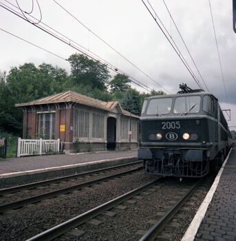 DescriptionCe groupe de photos se compose de sept négatifs. Les photos montrent l’abri qui est construit en brique, fonte et verre. La locomotive électrique 2005, la locomotive diesel 6204 et les automotrices 308, 321, 337 et 509 passent dans la gare. Une clôture, composée d’éléments en béton, délimite le domaine ferroviaire.