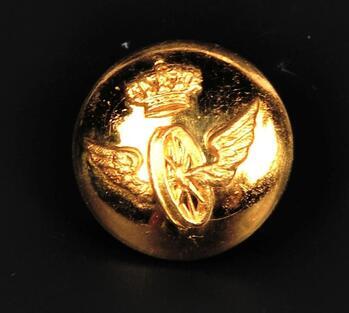 TitreBouton doré pour uniforme, décoré d’une roue ailée surmontée d’une couronne