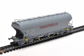 DescriptionCe wagon sur bogies de type Uapps est destiné au transport de produits céréaliers en vrac. Le wagon est gris et porte diverses inscriptions telles que le numéro du wagon et « Transcéréales ». Le modèle est réalisé à l'échelle H0 1/87.