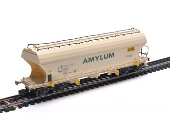 DescriptionCe wagon de type Uapps sur bogies était utilisé pour le transport de produits céréaliers. Le wagon est blanc et porte diverses inscriptions telles que "Amylum", "Cita" et le numéro du wagon. Le modèle est fabriqué à l'échelle H0 1/87.