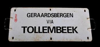 TitelRitbord voor de trein naar Geraardsbergen via Tollembeek