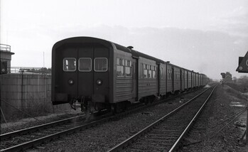 BeschrijvingEen trein bestaande uit R-rijtuigen heeft zojuist het station Kapelle-op-den-Bos verlaten richting Dendermonde.